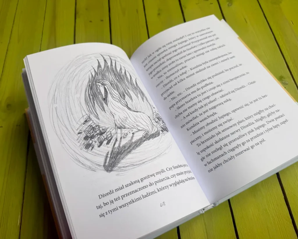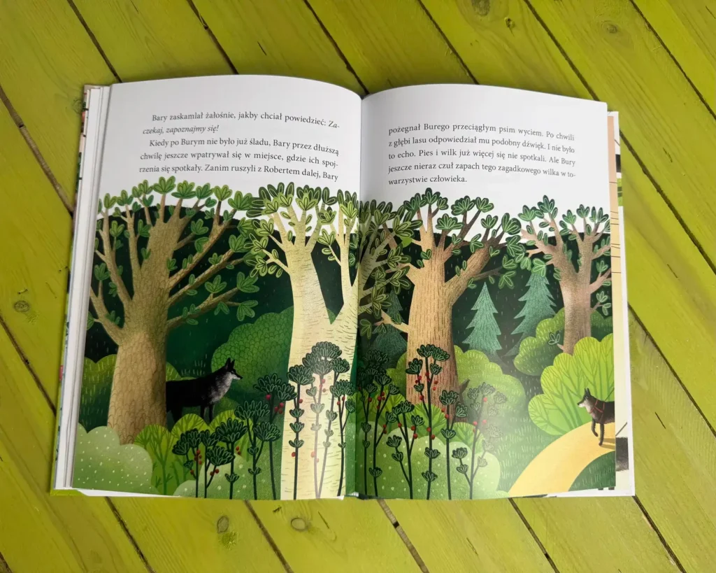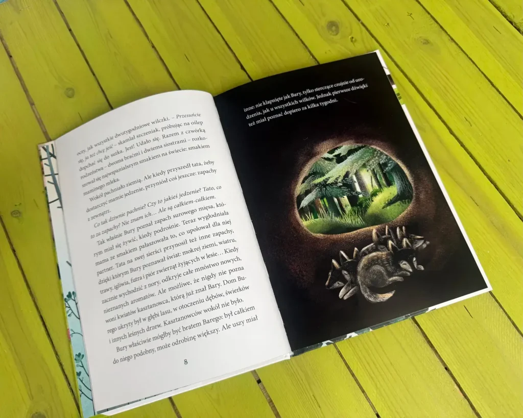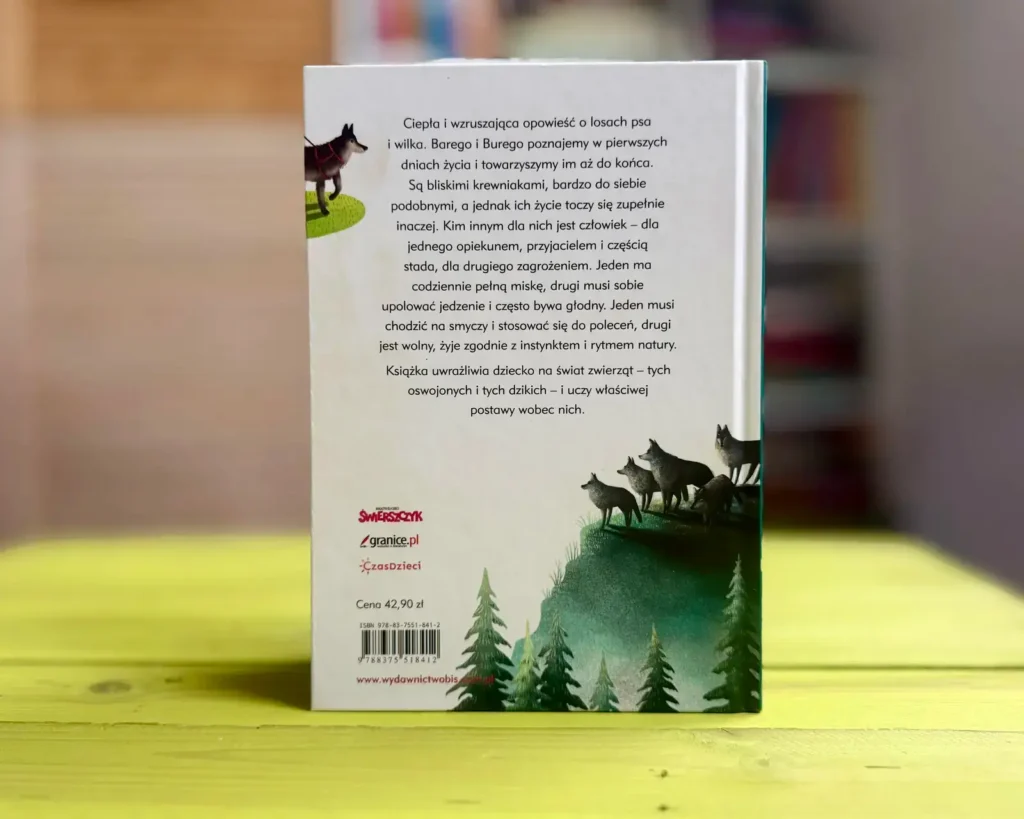 Pierwsza historia prowadzi nas dwiema ścieżkami. Jedną biegnie wilk, drugą pies. Ten sam gatunek. Inne życie. Wilcze dziecko dorasta w norze, między rodzeństwem, zapachem ziemi i czujnymi oczami rodziców. Człowiek nie jest tu przyjacielem. Jest zagadką. Czasem zagrożeniem.