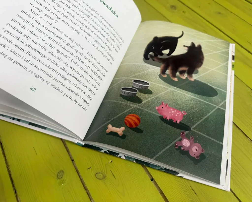 A jeśli wasze dzieci mają ochotę na książkę pełną psich charakterów, zamieszania i przygód, gorąco polecam drugą historię: „Raz, dwa, psy cztery”.