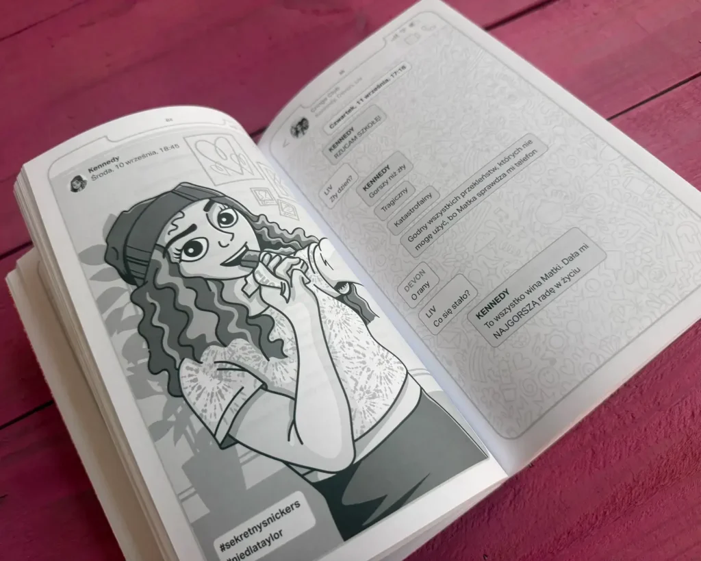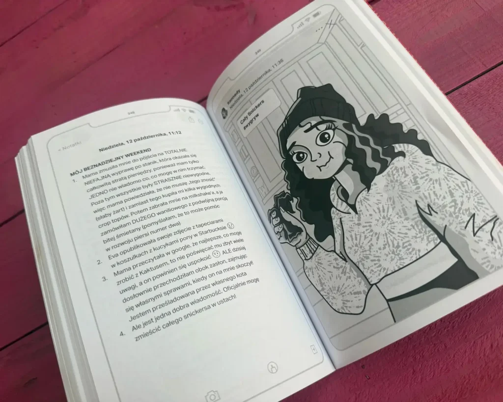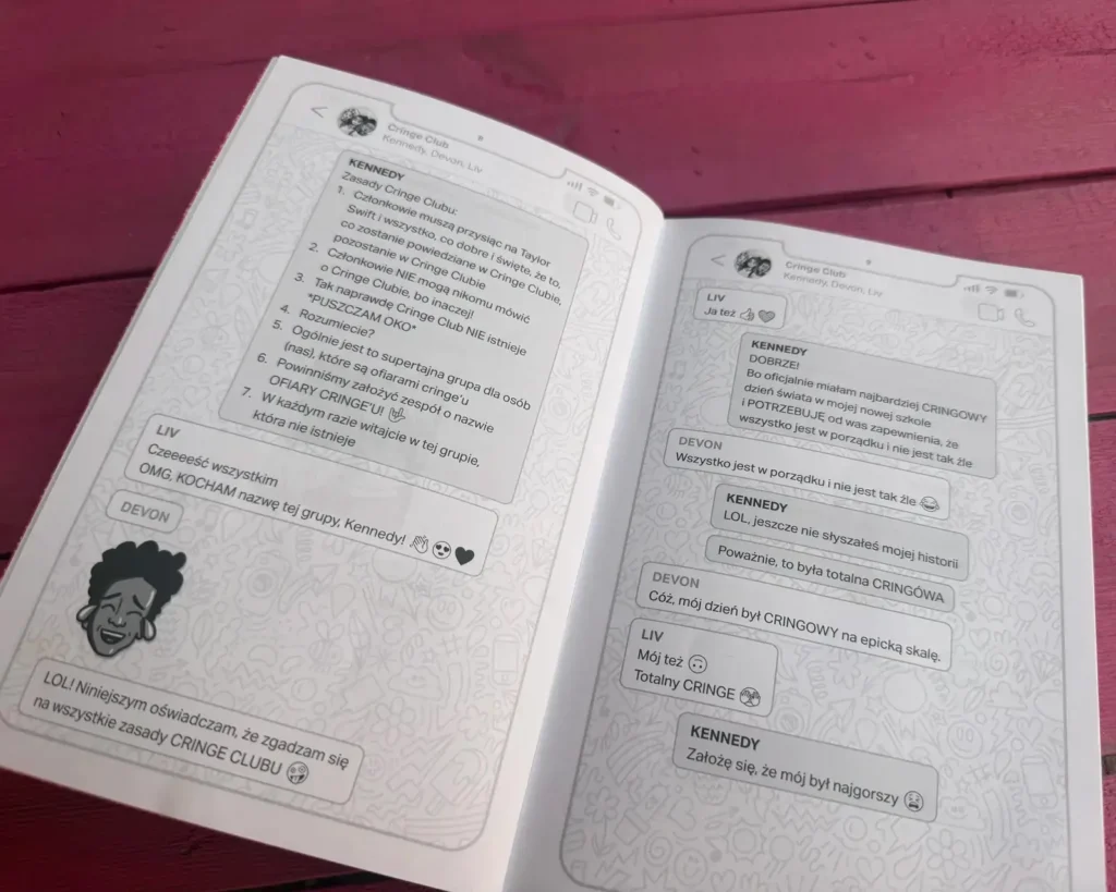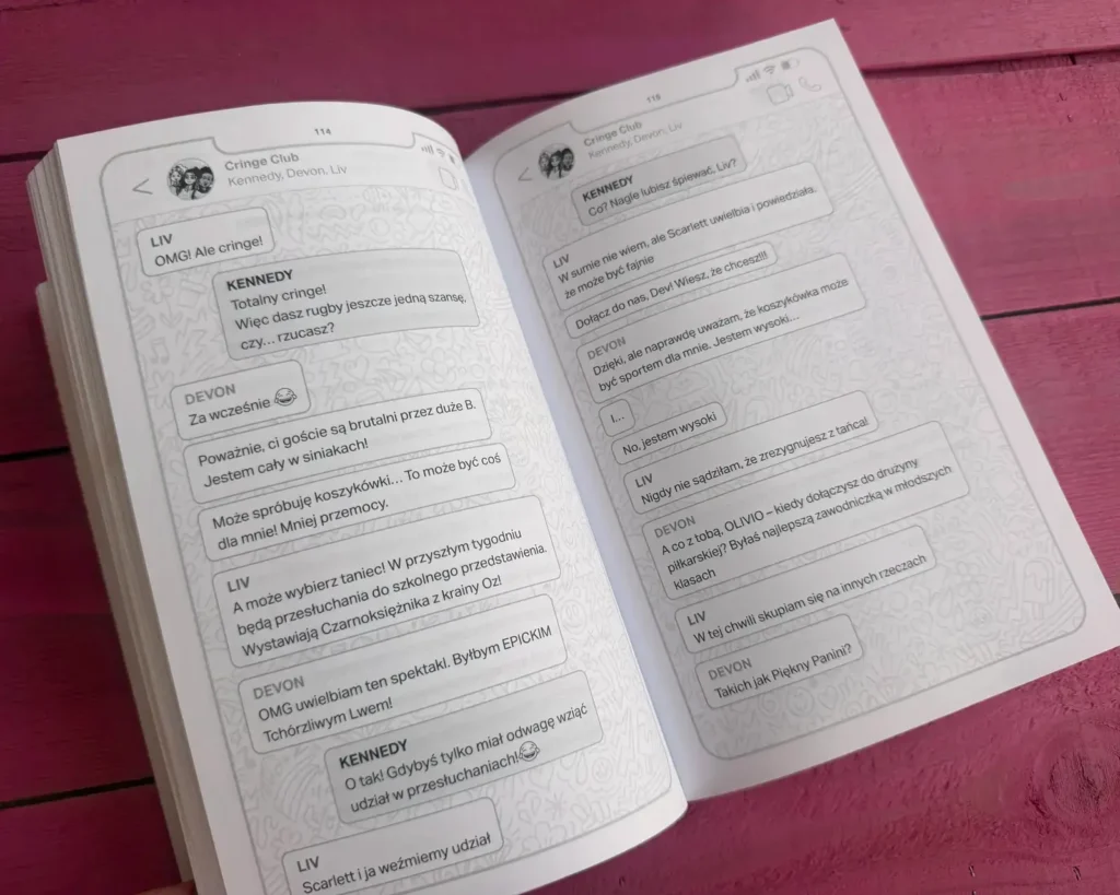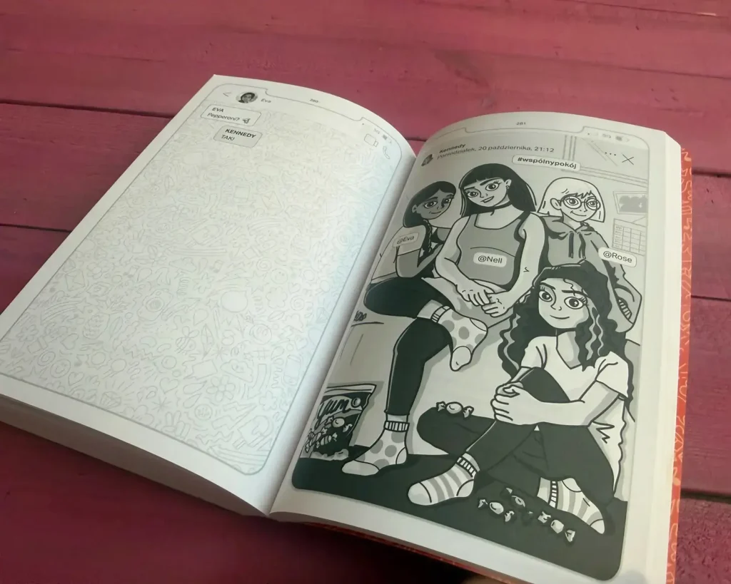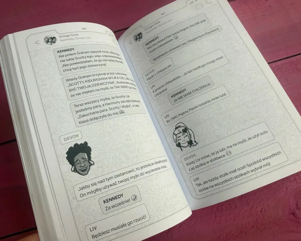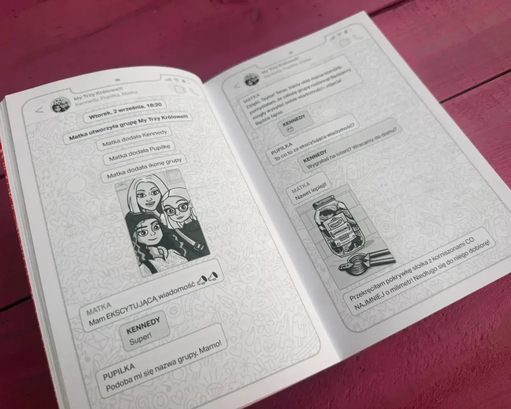 Jeśli ktoś zapyta: „po co dziecku książka, która wygląda jak zapis rozmów z telefonu?”, odpowiedź jest prosta. Bo to forma, którą dzieci znają i lubią. Krótkie wiadomości, emotki, urwane zdania, szybkie riposty to dokładnie świat, w którym dziś funkcjonują. Dzięki temu łatwiej po tę książkę sięgają i naprawdę chcą czytać. A zamiast bezmyślnego przewijania dostają historię, emocje i relacje.