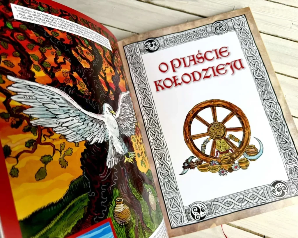 To prawie dwukilogramowa księga w wielkim formacie, z pięknymi złoceniami na okładce. Ilustracje Pawła Kołodziejskiego są klimatyczne i pełne szczegółów – idealnie oddają ducha każdej legendy. I nie przesadzę, nazywając tę książkę dziełem, bo każdy jej detal został dopracowany do perfekcji.