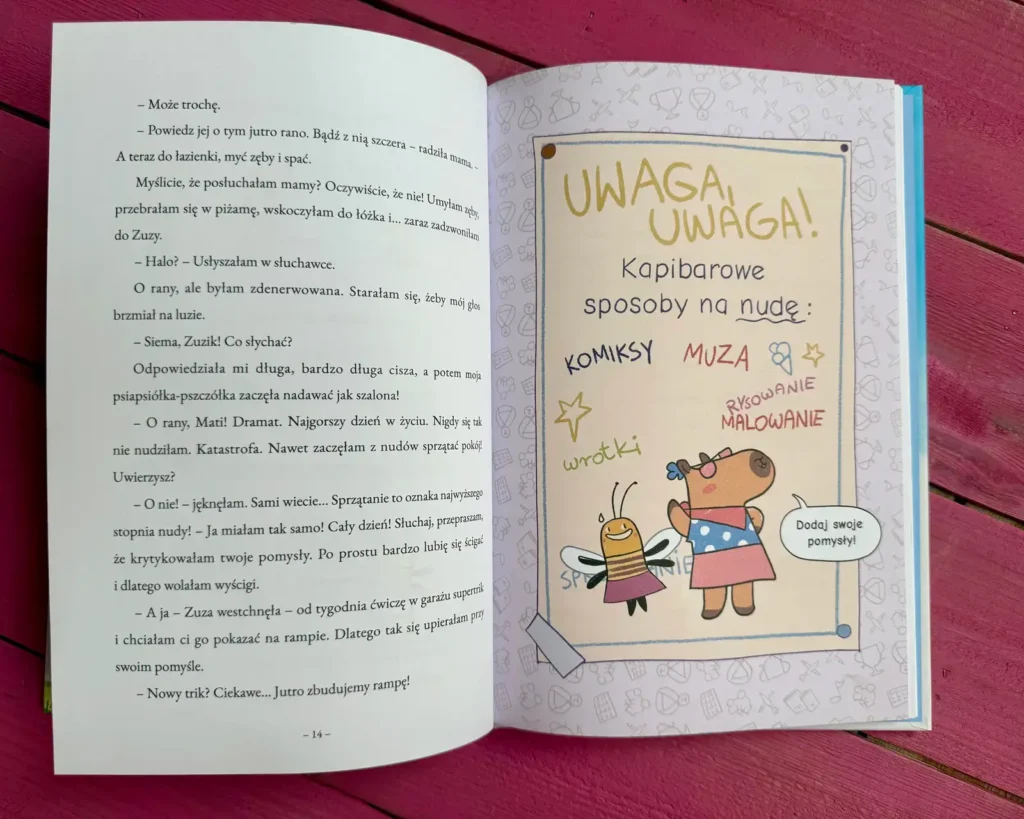 I wtedy pojawia się Matylda. Kapibara, która przeprowadza się do nowego miasta z całym pakietem emocji. Jest odrobinka strachu. Jest nadzieja. I ogromna potrzeba, żeby ktoś powiedział: „chodź, usiądź obok mnie”.