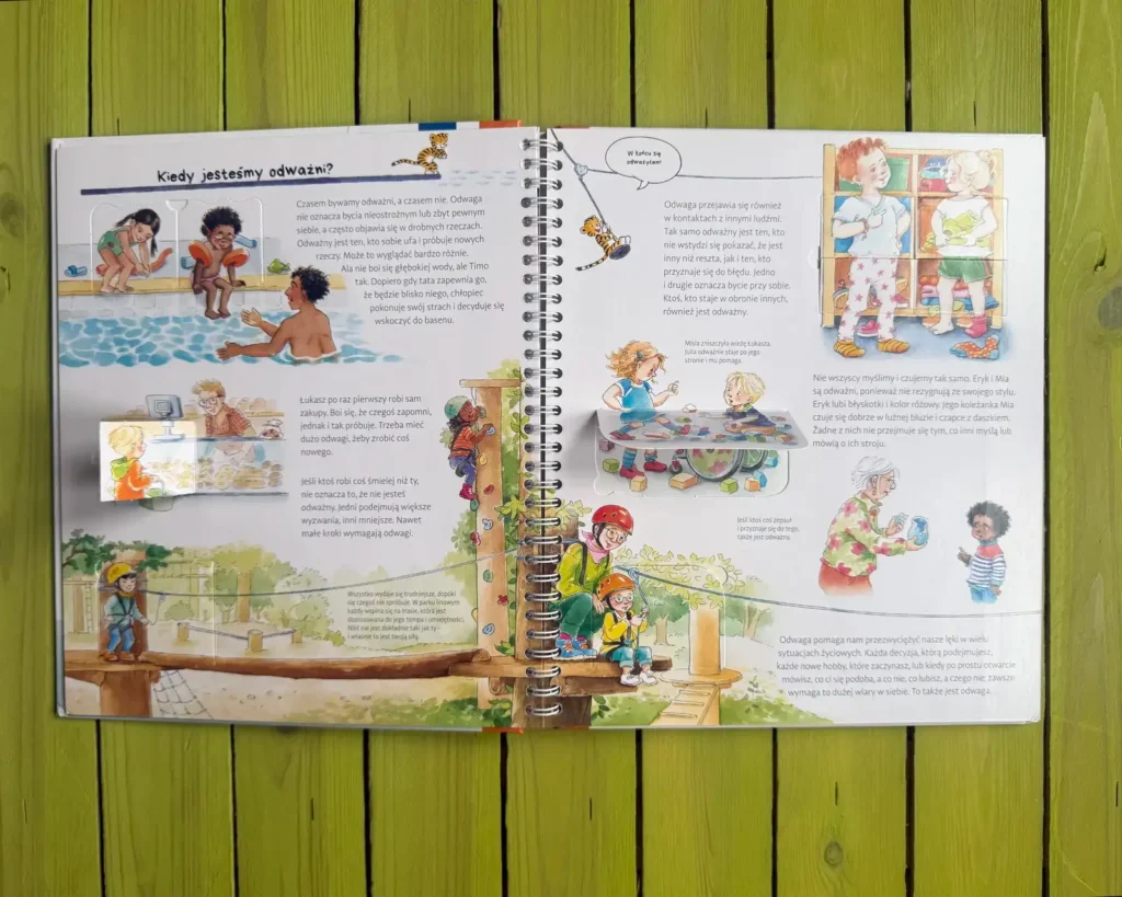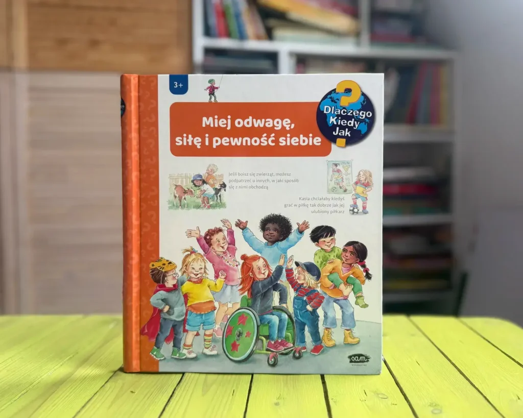 „Miej odwagę, siłę i pewność siebie” daje dziecku zgodę na różnienie się, na próbowanie, na porażkę. Jest wprost o tym, kiedy ważne jest powiedzenie „nie” i jak budować pewność siebie bez udawania, że wszystko jest idealnie. Jest też podjęty temat wykluczenia, mądrze, prosto i bardzo pomocnie. Bez straszenia. Z konkretem.